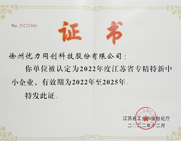 公司与2022年12月12日通过了江苏省工业和信息化厅认定的2022年度江苏省专精特新中小企业认定。序号60 为我公司